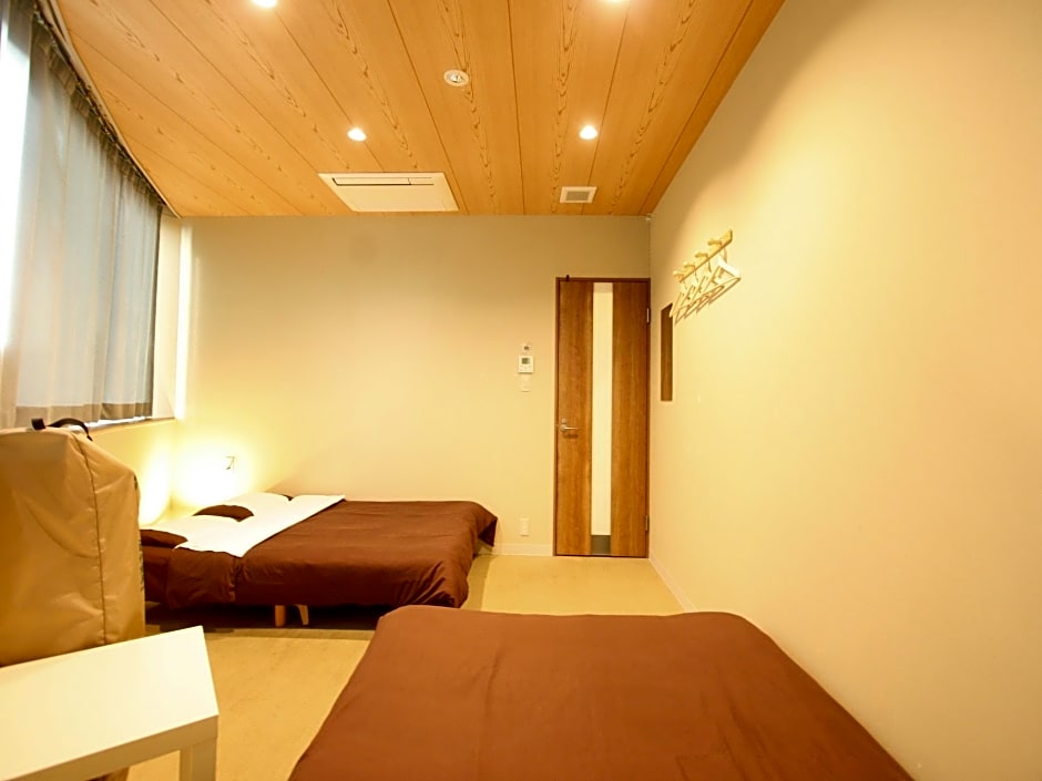 The triple room offers air conditioning, a washing machine, as well as a shared bathroom featuring a shower and a hairdryer. Guests can make meals in the fully equipped kitchenette that features kitchenware, a microwave and a toaster. The triple room provides tatami, a tea and coffee maker, a dining area, tumble dryer, as well as a TV. The unit offers 3 futons.